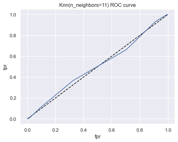 plt.title('Knn(n_neighbors=11) ROC curve')