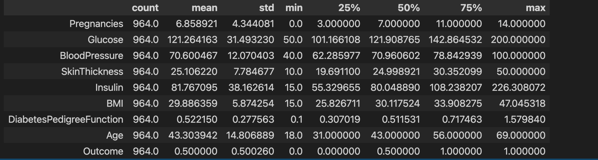 'BMI', 'DiabetesPedigreeFunction', 'Age'])Step 10: Split the training and testing data before modelling.