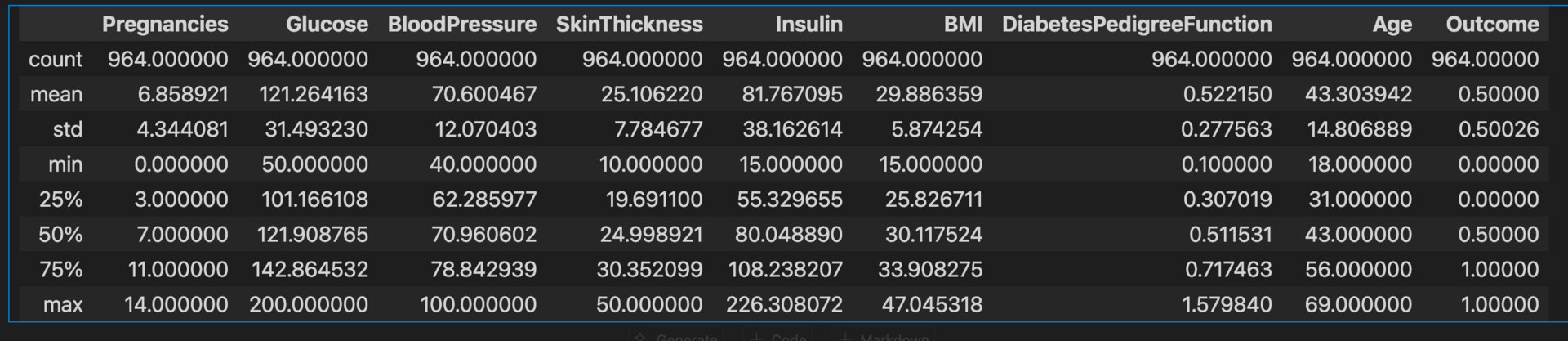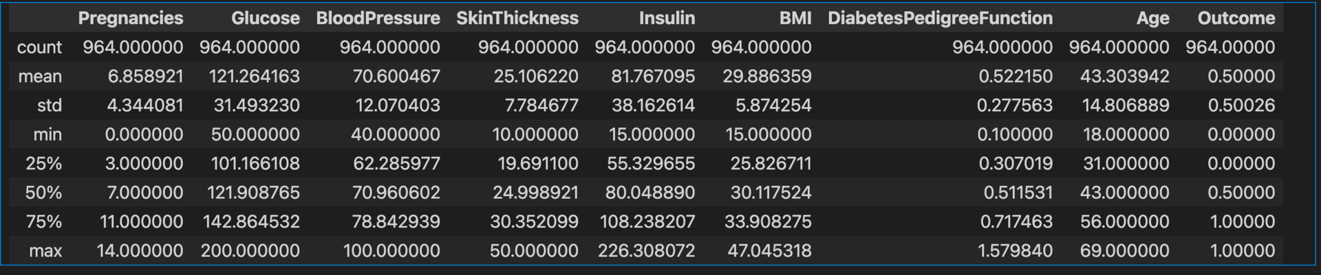columns=['Pregnancies', 'Glucose', 'BloodPressure', 'SkinThickness', 'Insulin',