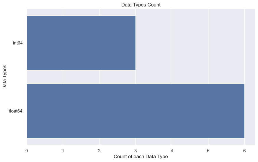 sns.countplot(y = diabetes_data.dtypes, data=diabetes_data)