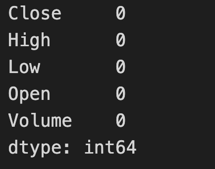 Index(['Close', 'High', 'Low', 'Volume'], dtype='object')